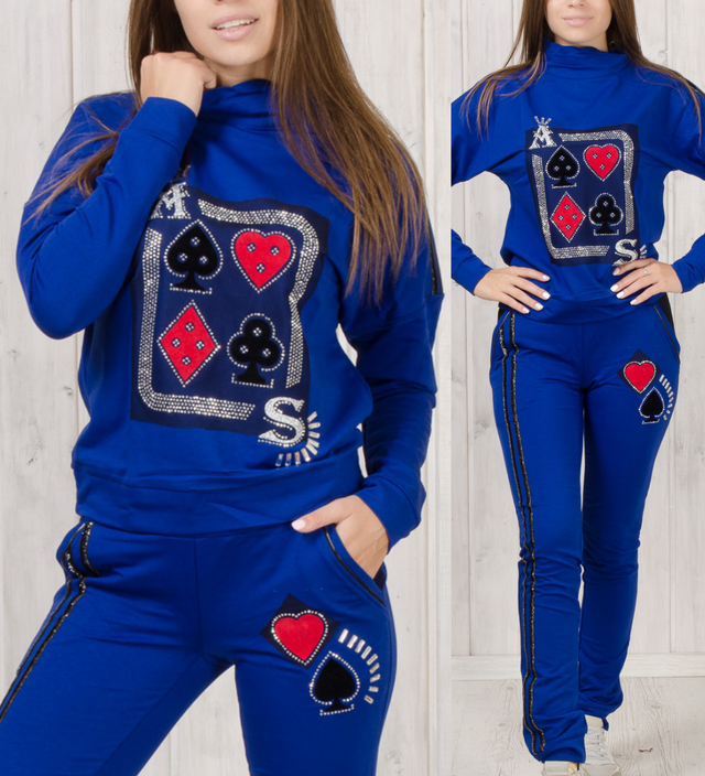 Прикрашальні елементи: виготовлені з високоякісного декоративного каменю под Swarovski; Дуже стильний вигляд має лампаси з оксамитової стрічки; Принт виготовлений із високоякісного клейового матеріалу "флок"; Загальний ансамбль гри тканини та страз надає виробу оригінальності та строгого шик.